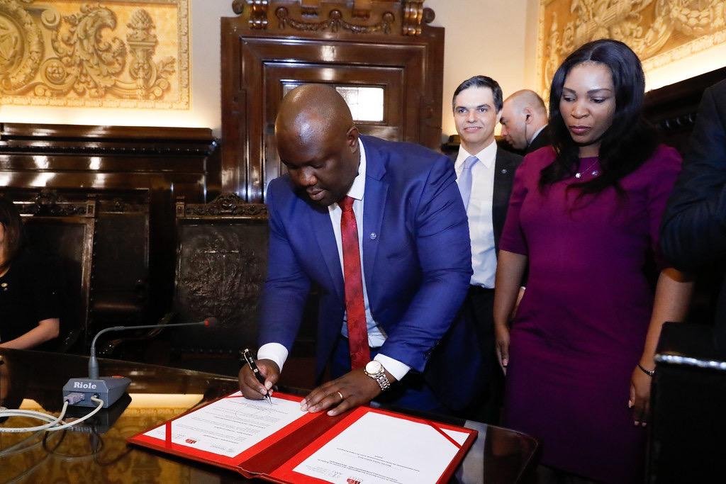 São Paulo, Brasil, quarta-feira, 6 de Novembro, momento da assinatura do MdE entre o Forum Nacional dos Magistrados que Actuam em Matérias de Violência da AMJ, representado pelo presidente Hélio Canjale e a congénere brasileira, representada pelo presidente Ariel Nicolai.
