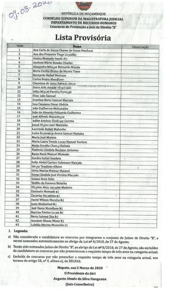 Lista provisória dos juízes promovidos à categoria de juiz de Direito A.