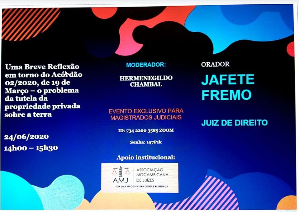 24.06.2020, webinar com o juiz Jafete Fremo, do Tribunal Judicial da Cidade de Pemba.